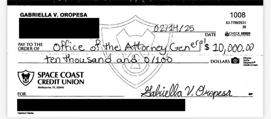 The state’s attorney general, James Uthmeier, sent a letter Wednesday to Florida’s chief financial officer, transmitting a $10,000 civil fine “received by court order from a member of the extremist organizations, Antifa and Jane’s Revenge, who unlawfully threatened employees of a Florida pregnancy resource facility.”